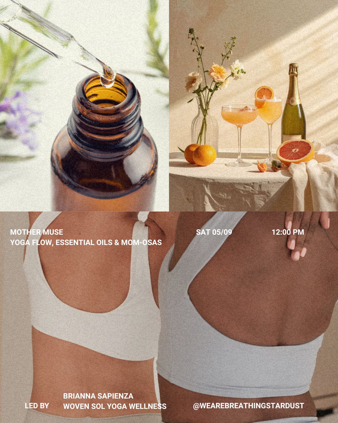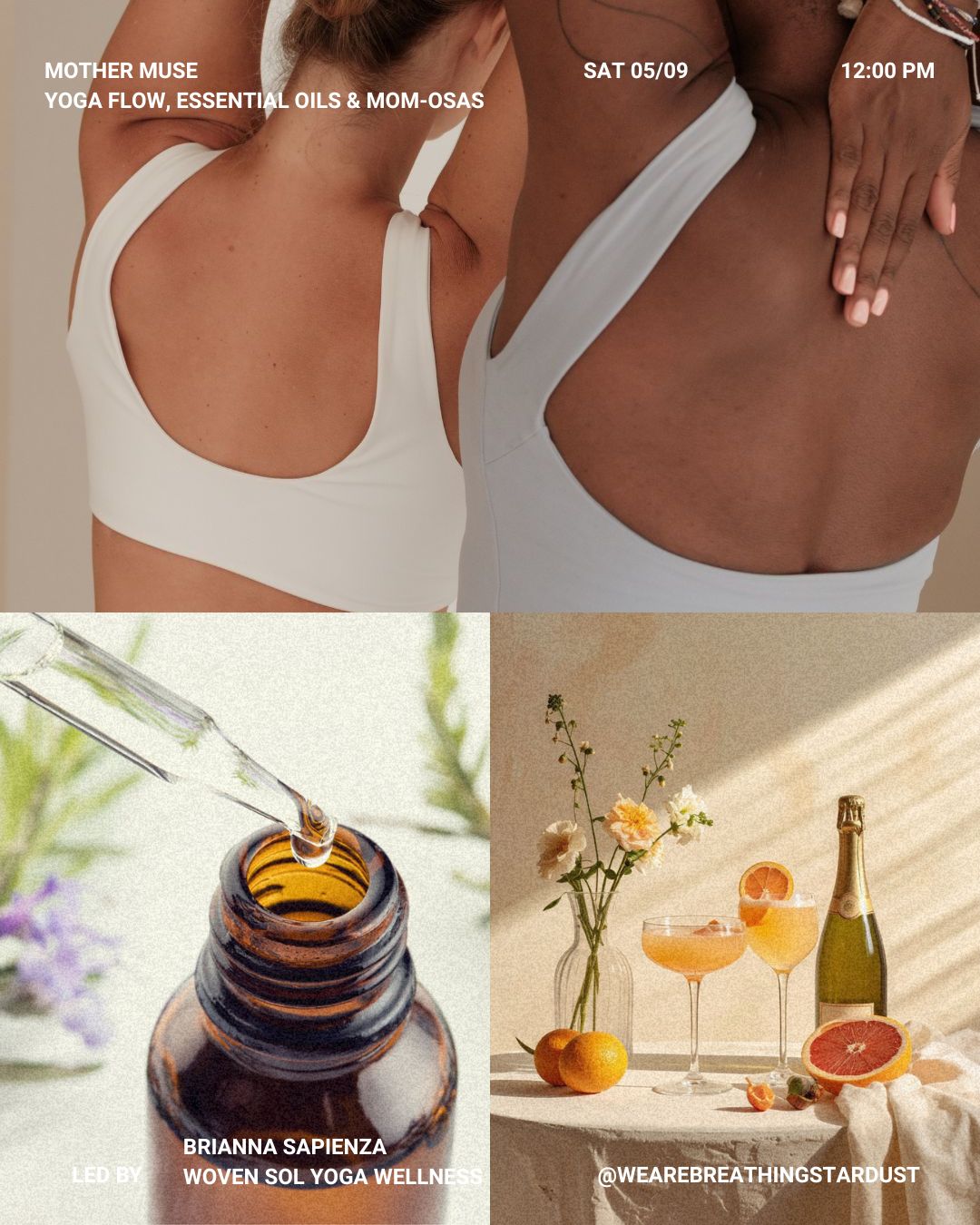 Mother Muse is a softly curated experience where movement, ritual, and celebration come together. We’ll begin with a 45-minute all-levels yoga flow to ground, open, and reconnect with the body, followed by a guided essential oil blending experience where you’ll create your own custom roller to take home.