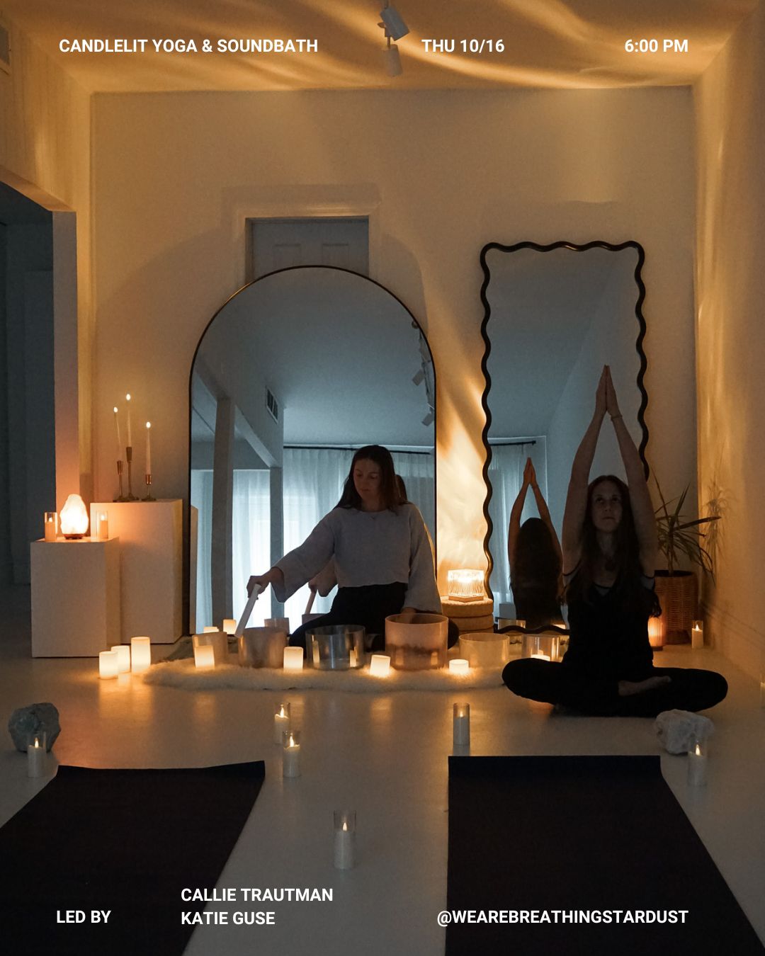 This evening unfolds slowly, inviting your body and mind to soften. You’ll begin with 30 minutes of gentle yoga—a grounding practice that releases tension and encourages mindful movement.